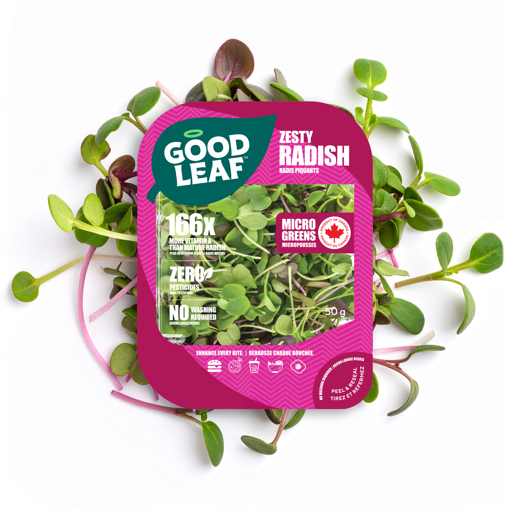 With a Nutty and peppery flavour, these bright, green, heart-shaped leaves elevate the look of any meal with 4x the Vitamin C* of mature arugula per gram. Perfect sprinkled on pizza, pasta, or used in sandwiches like a classic BLT!